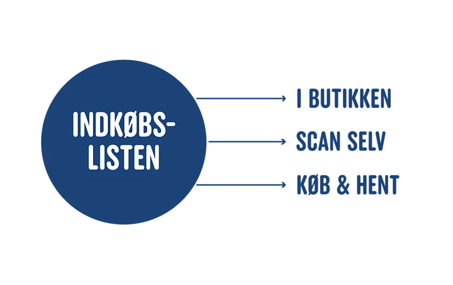 Indkøbslisten er omdrejningspunktet for vores digitale tjenester, og er din egen digitale indkøbshjælp - om du handler i butikken eller bestiller dit indkøb til levering eller afhentning.