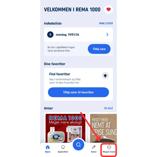 Vælg "Meget mere" nederst til højre i appen.