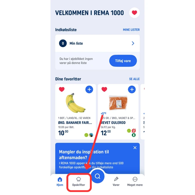 Find opskrifter i REMA 1000 appen