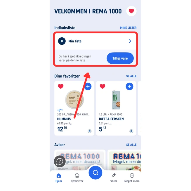 Du kan også læse mere omkring hvordan du tilføjer eller fjerner varer fra indkøbslisten i REMA 1000 appen: Hvordan tilføjer eller fjerner jeg varer fra indkøbslisten i REMA 1000 appen? | REMA 1000