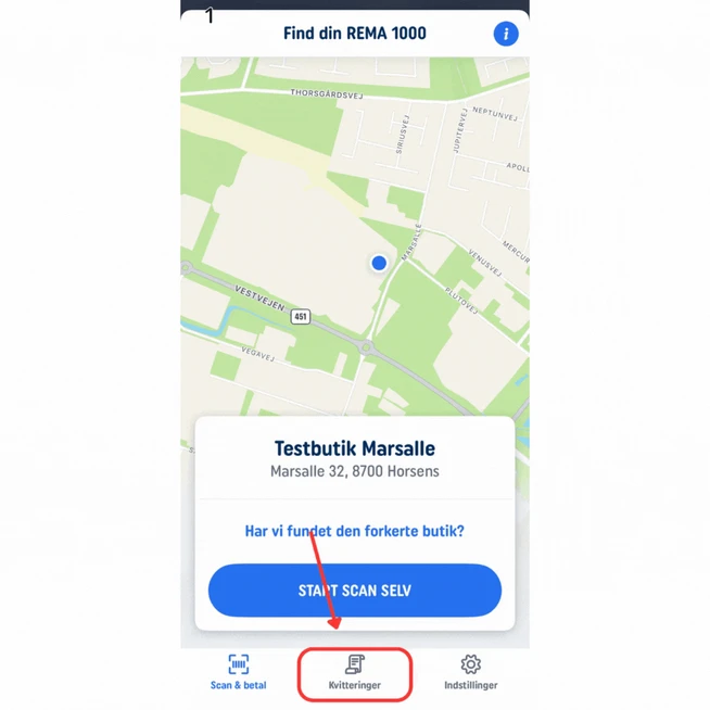 Her kan du finde alle dine Scan Selv indkøbskvitteringer – Vælg derefter den relevante kvittering.