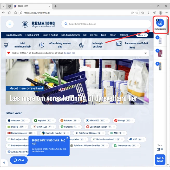 På vores shop.REMA1000-hjemmeside kan du dele din indkøbsliste med familie og venner, så indkøbene bliver nemmere for dig – og for dem. Når du deler listen med familie eller venner, så kan de let handle fra den i den lokale REMA 1000 - de kan endda åbne listen i Scan Selv-appen og handle derfra.