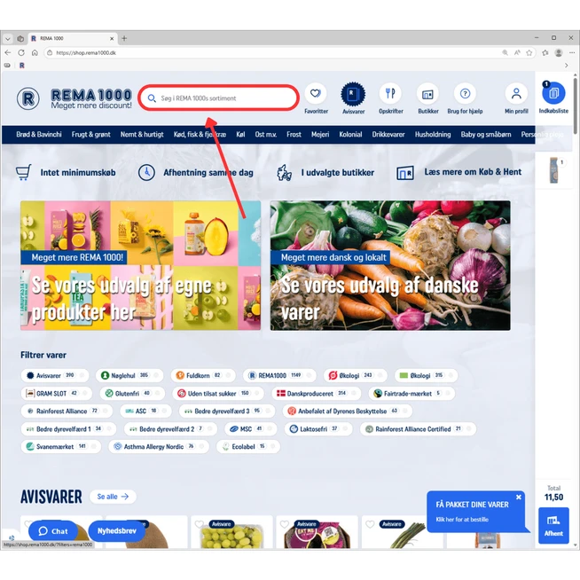Her er en guide til, hvordan du kan tilføje og fjerne varer fra din indkøbsliste på REMA 1000 Shop-hjemmesiden.