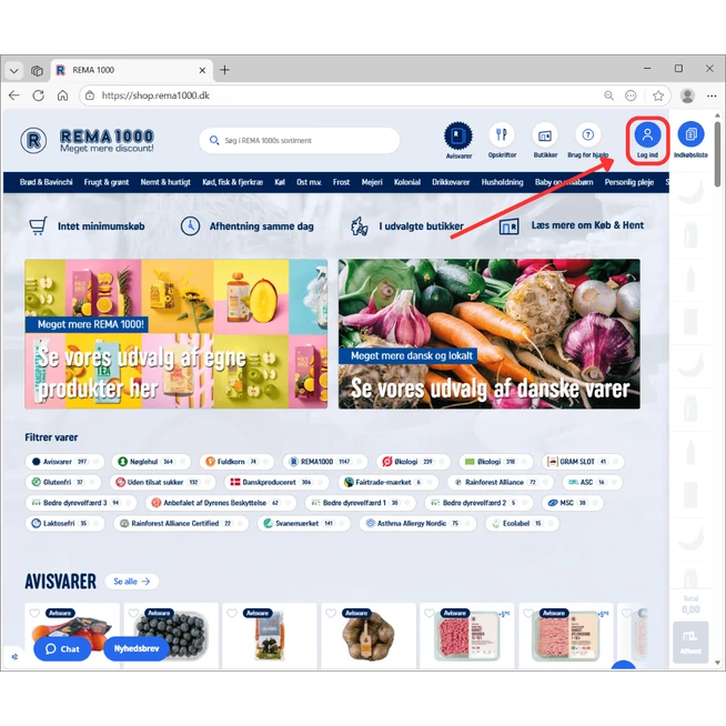 Her kan du se, hvordan du nemt logger ind og ud af vores shop REMA 1000 hjemmeside.